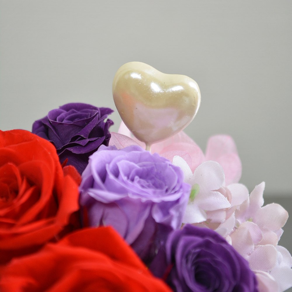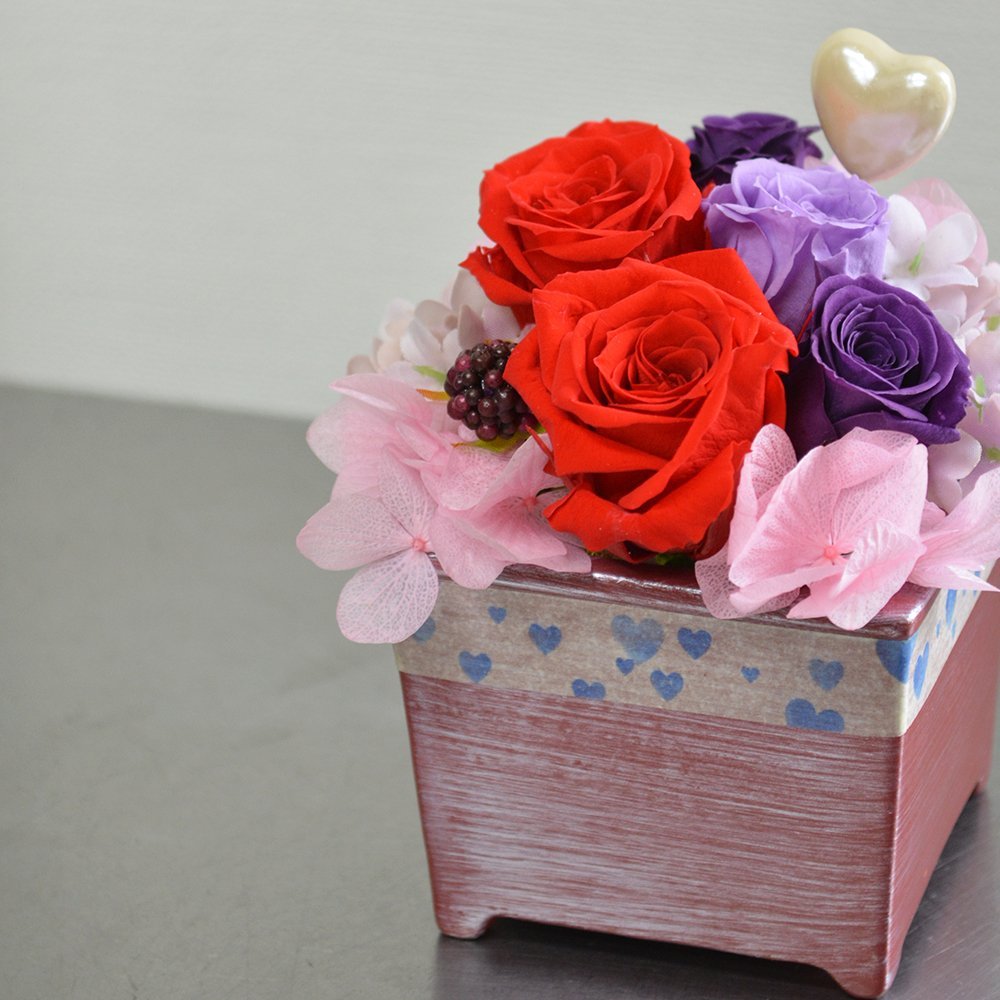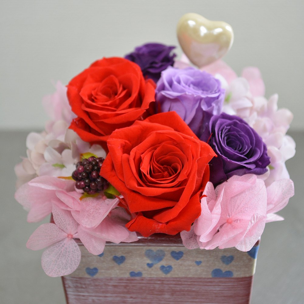 プリザーブドフラワー ピンクコンポート レッド&パープルバラ アレンジメント クリアケース付 フラワーギフト 花ギフト ブリザーブドフラワー