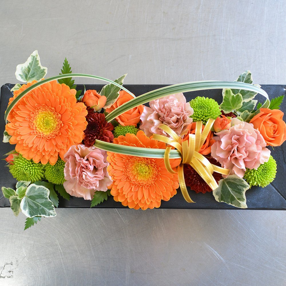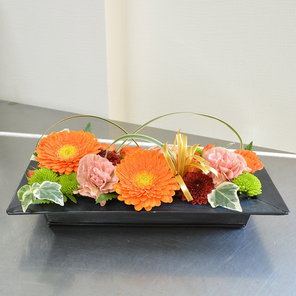 生花 オレンジガーベラ 横長アレンジメント フラワーギフト 花ギフト 誕生日祝い プレゼント お祝い 退職祝い 快気祝い 退院祝い