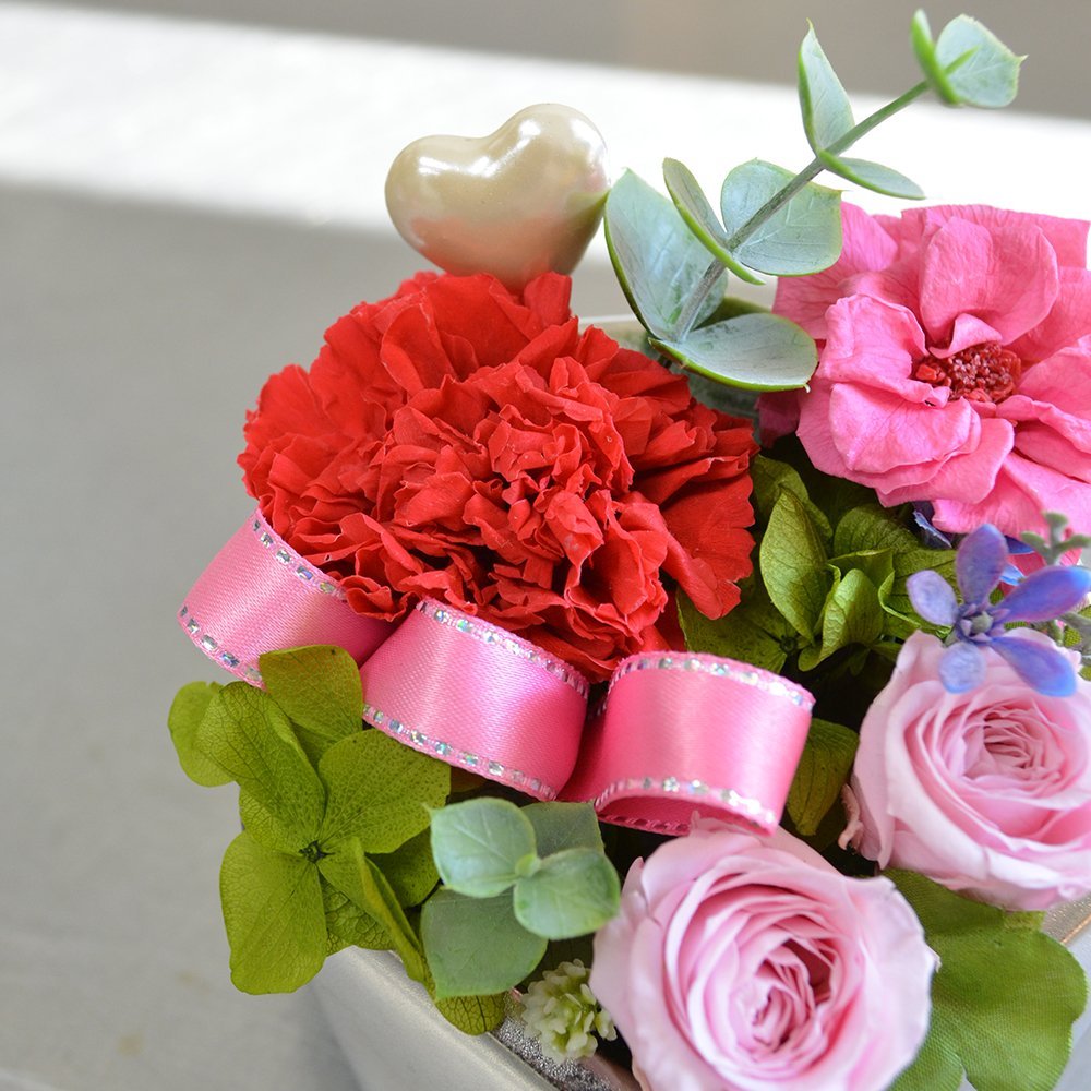 プリザーブドフラワー 多角形ポット カーネーション&バラ アレンジメント クリアケース付 フラワーギフト 花ギフト ブリザーブドフラワー 誕生日祝い 結婚祝い 母の日