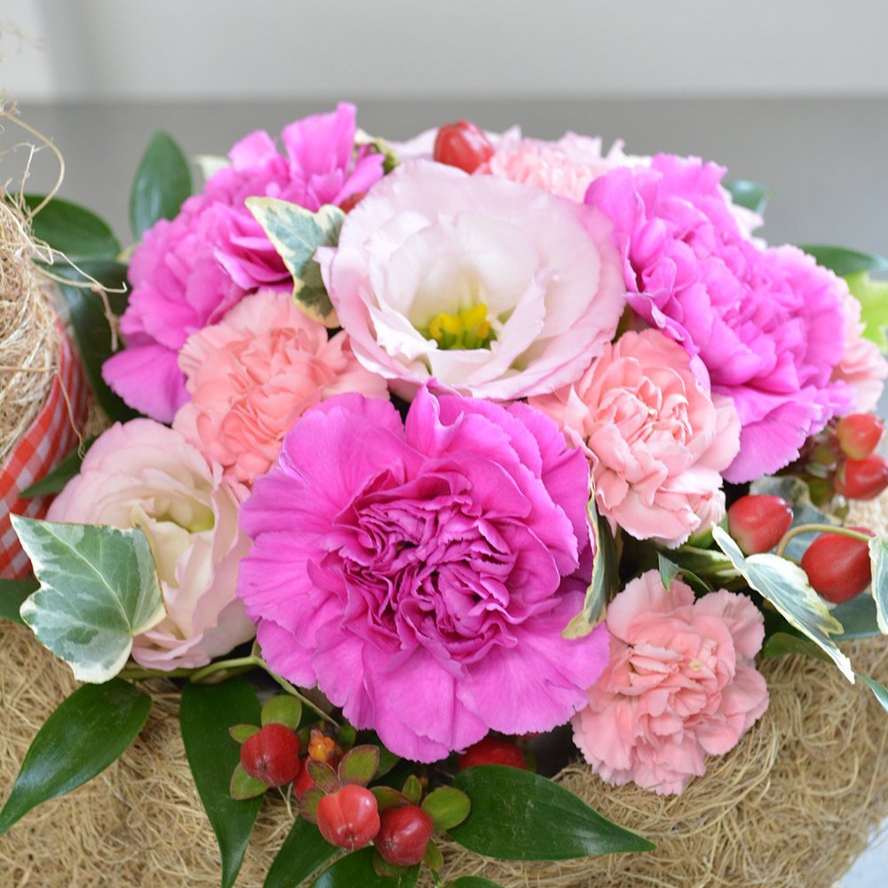 生花 ドッグバスケット ピンクカラーアレンジメント フラワーギフト 花ギフト プレゼント