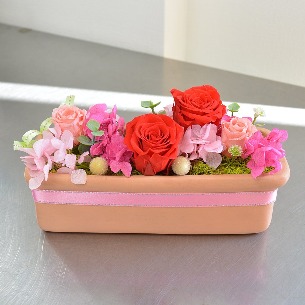 プリザーブドフラワー テラコッタ風陶器 横長アレンジメント フラワーギフト 花ギフト ブリザーブドフラワー